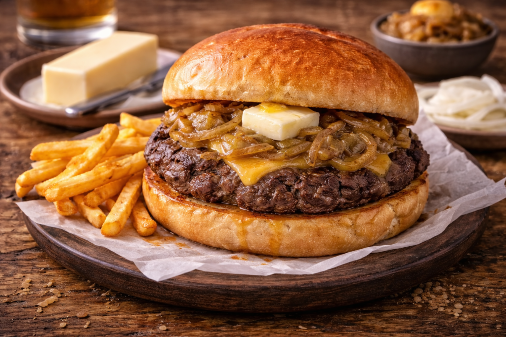 Coming from the Dairy State, the Butter Burger is precisely what it sounds like: a juicy beef patty topped with a chunky slice of butter, which also melts into the bun. Made with butter, ground beef, onions, and American cheese, the butter softens the burger and boosts its flavor and richness. Dairy is, of course, a concern for some, but in the Midwest, it’s a favorite. For those seeking rich, indulgent burgers, the Butter Burger is a must-try in the US.