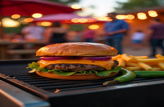 This Southwestern delicacy features roasted Hatch green chiles sitting above a beef patty, topped with cheese, and typically served in a toasted bun. The toasted bun and roasted green chiles give the southwestern green chile cheeseburger a spicy and smokey flavor, which the cheese subdues. The chiles offer health benefits by being high in vitamin C and containing antioxidants. The allergens are primarily gluten and dairy. With the southwestern traditions, the green chile cheeseburger is a unique and spicy addition to the American collection of burgers.