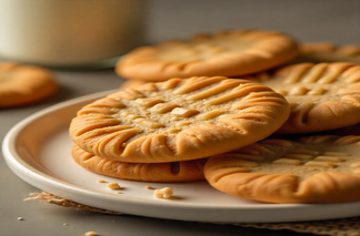 Peanut butter cookies are made from peanut butter, eggs, and flour and sweetened with sugar, making them especially rich and nutty. Before they are baked, a fork is used to create a crisscross design. Aside from their rich taste, peanut butter cookies are a wonderful, satiating snack that is high in protein. Allergens: peanut butter and flour.