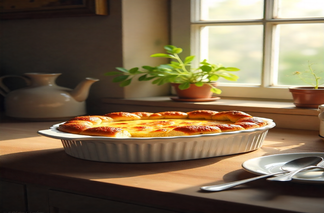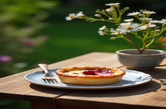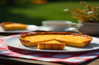This is a classic dessert from Derbyshire that is also made vegan. It has a crisp pastry base with a layer of fruit jam and an almond-flavored frangipane layer made of ground almonds, flax eggs, and vegan margarine. Topped with flaked almonds, it creates an irresistible nutty sweetness. It is gluten-free with an almond flour crust, although it does have nuts, making it a perfect dessert for those that love rich, layered flavors.