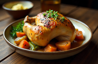 This roast is made using a whole chicken, butter, root vegetables, and herbs such as thyme and parsley, as well as lemon. This roast chicken is loved because of the pleasant aroma as well as the tenderness of the chicken. For herb butter, the chicken is coated and roasted until it is crispy and golden, gilded with juiciness. Family meals are best with this recipe, as the chicken is roasted and ready to serve to many. An allergen with this recipe includes dairy, as the butter is an ingredient; however, it is a go-to recipe for family meals.