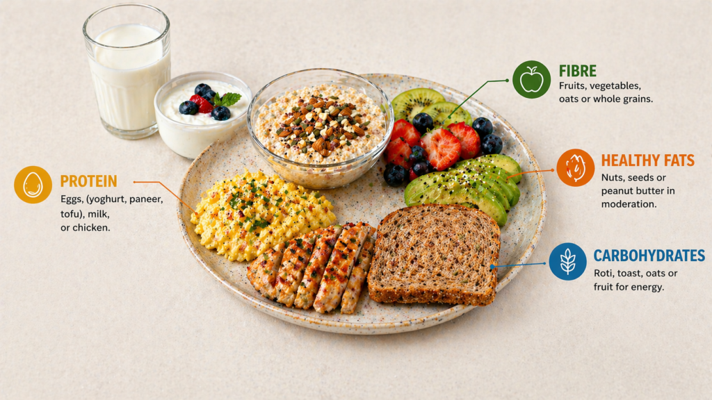 Breakfast should be filling but not too heavy. Eggs, yoghurt, paneer, and oats can help manage hunger and support weight control
