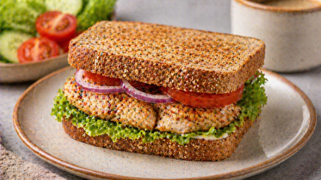 A chicken sandwich makes a satisfying alternative for those desiring a more substantial breakfast. Add vegetables and wholegrain bread for a more balanced meal