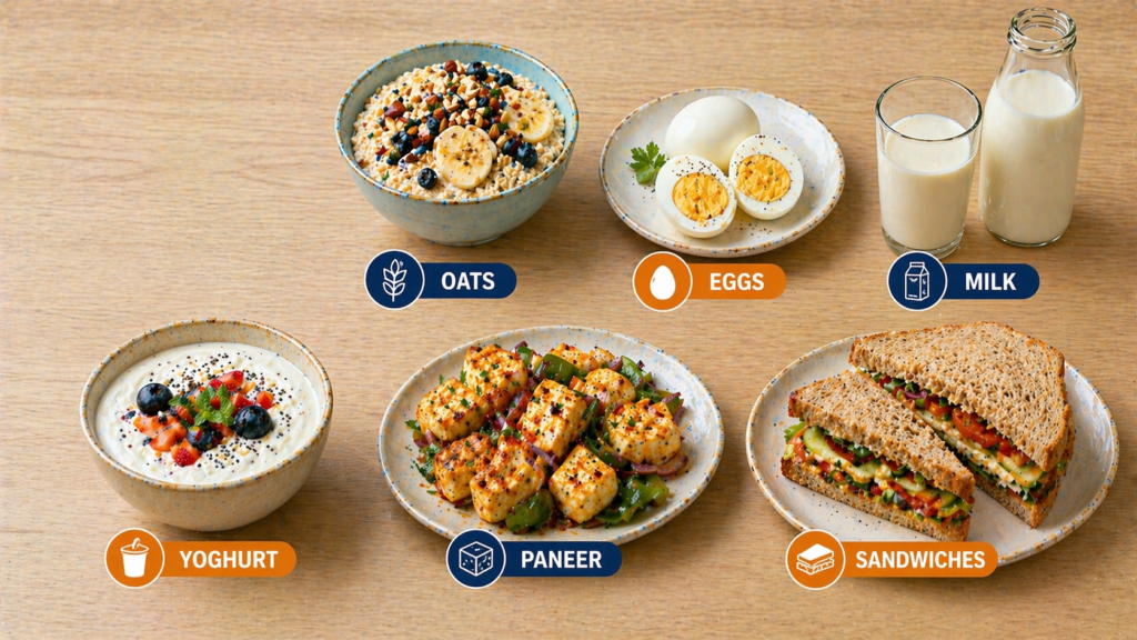 These protein breakfast ideas help working women, students, and people who leave home early. The goal is not perfection. The goal is to avoid skipping breakfast or reaching for junk food.