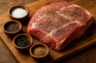 • Coat both sides of the meat with a pinch of salt and ground pepper.