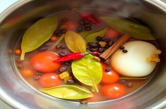 Meat becomes tastier with the addition of more spices. I prefer rich stew. Thus, I add a handful of flavour enhancers, such as black peppercorns, bay leaves, garlic, ground cloves and cumin.
