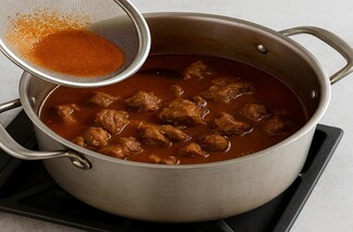 • Strain it and add it to the sautéed meat. Reduce the flame and cook until the meat tenderises. It will take up to 2½ hours.