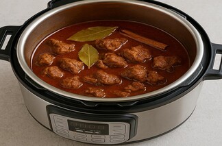 Press the sauté mode on the pot to brown the meat. Once sautéed, add the chilli paste and cover with the lid. Pressure cook it for up to an hour. Once the pressure releases, add your preferred seasonings and enjoy!