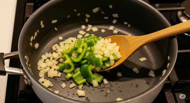 - As an option, include 1 chopped green bell pepper and cook for another 2 minutes