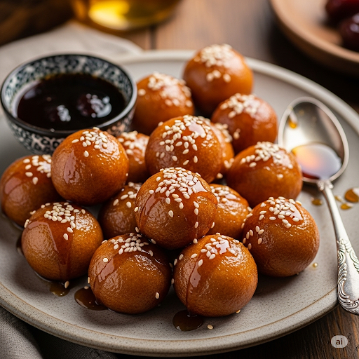 Step 5 : When luqaimat are still warm, serve with plenty of date syrup poured all over