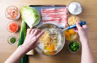 - Add chopped ingredients to the base batter, and your okonomiyaki batter is ready.