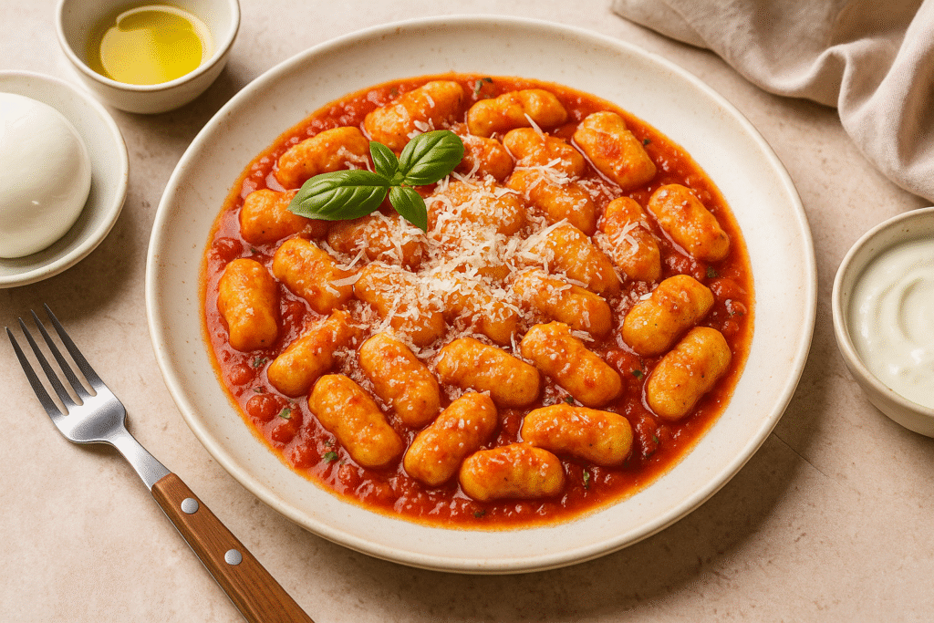- Ricotta gnocchi reflect Italy’s rustic cooking traditions, mainly in central and southern areas like Lazio, Campania, and Tuscany. It represents the ingenuity of cucina povera (peasant cooking), in which simple, humble substances like cheese, flour, and eggs have been transformed into enjoyable meals. Ricotta, a smooth, sparkling cheese made from whey, is the base of Italian dairy culture
