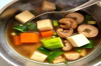 • Add veggies, tofu, and mushrooms to the simmering dashi and cook until they soften and release a flavourful aroma.