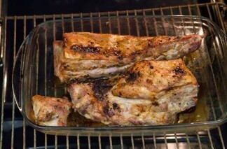 - Place an aluminium foil in the baking tray and add marinated pork.