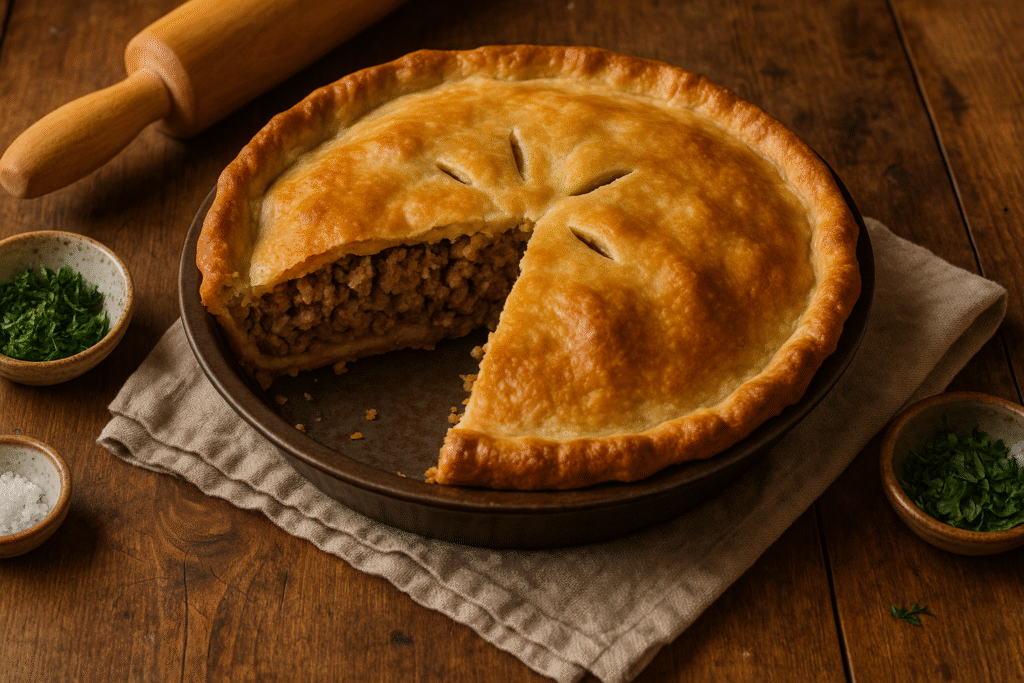 Tourtière is a conventional French-Canadian meat pie with deep historical and cultural roots in