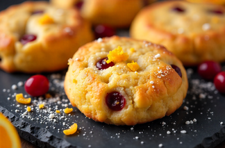 This cheery variation is made with orange zest to go along with the cranberries, vegan butter, sugar, and flour. Pan cooking is done after mixing the ingredients to make a soft dough, and fragrant cooking ensues. This dish has the benefits of the antioxidants in the cranberries along with the tangy flavor from the citrus. The allergens include gluten.