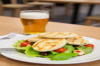 Enjoy a fresh salad with pieces of grilled golden halloumi. Take a mix of cherry tomatoes, cucumbers, spinach, a squeeze of lemon, and olive oil for a dressing. The slightly sweet and fruity profile of the wheat beer brightens the salad and balances the saltiness of the halloumi. This dish is light yet satisfying and perfect with a wheat beer for the summer, as enjoyed in England. Contains dairy.